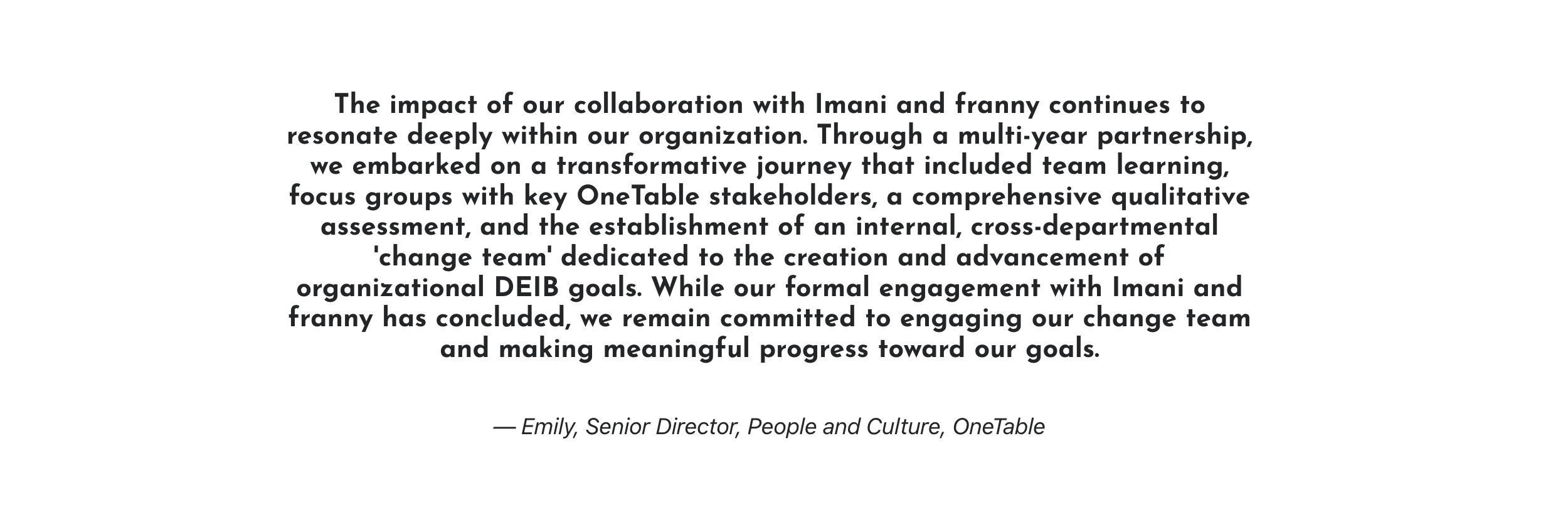 Working with us always involves consulting with Imani, and, frequently, with one or more collaborators.