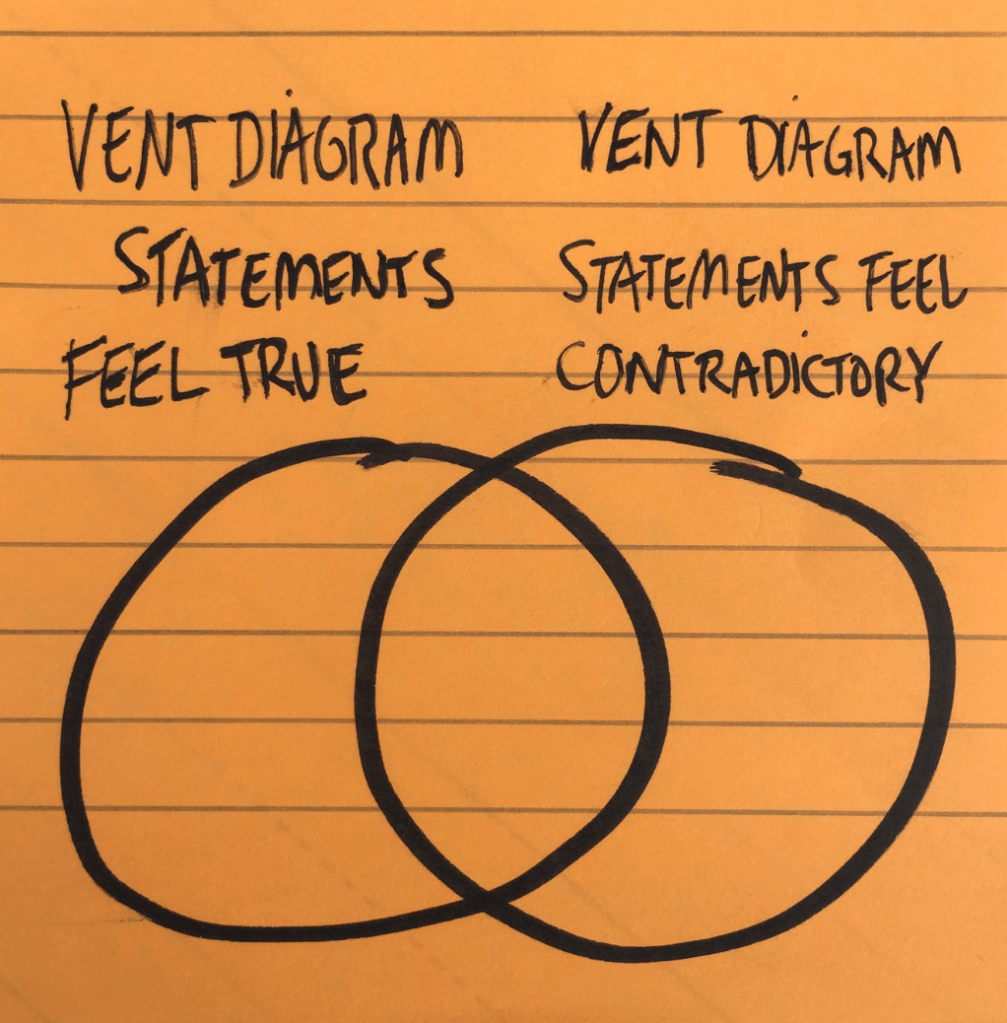 Vent Diagrams have transformed the way we can talk about difficult and nuanced topics. While it’s possible to make vents on any topic, we especially appreciate the vents on antisemitism from the project by Jews for Racial and Economic Justice.